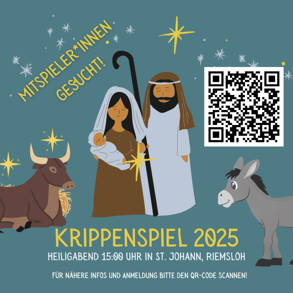 - Krippenspiel: Mittwoch, 24.12.2025, 15.00h (Kirche St. Johann, Riemsloh) – die Kinder treffen sich um 14.40h im Pfarrheim St. Johann, Riemsloh.